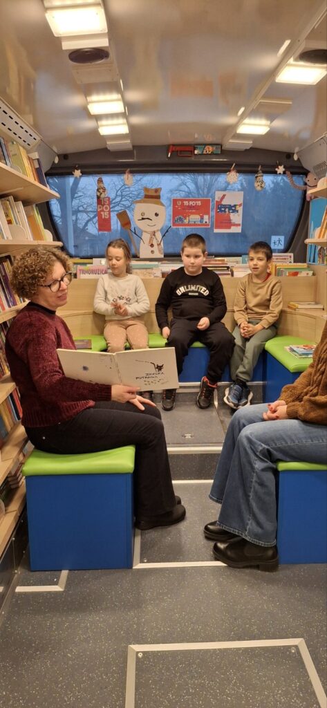 Učenici prvog razreda naše škole uključeni su u Nacionalni program poticanja čitanja djeci od najranije dobi. U četvrtak, 21. siječnja ove godine, su u sklopu Nacionalnog čitalačkog izazova 15 po 15: cijela Hrvatska čita djeci bili u bibliobusu Gradske knjižnice “Ivan Goran Kovačić”. Teta Nataša pročitala im je slikovnicu Miroslava Kirina: Zimska potraga.