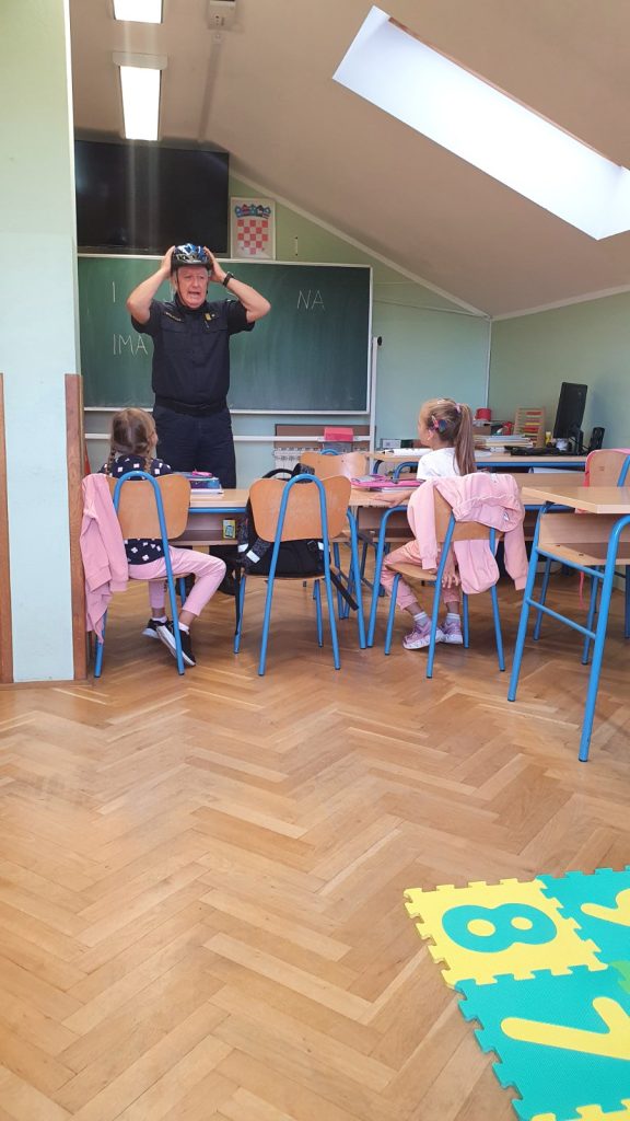 U srijedu, 20. rujna naše je prvašiće posjetio naš dugogodišnji suradnik, djelatnik PU Karlovačke, Dražen Rakuša. Održao je predavanje, razgovarao s njima te ih upoznao s temeljnim pravilima sigurnog sudjelovanja u prometu. Učenicima je podijelio i prigodni promidžbeni materijal.
